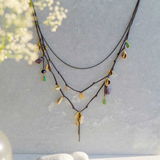 Embrace all the layers of your life with this dainty, 3-layered necklace featuring faux leather strings embellished with natural stones and seashells. This design is for those who dare to be themselves.