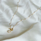 Step into the realm of divine elegance with the Ethereal Pearl Drop Necklace. Its unique clasp seamlessly blends into the pendant, creating a harmonious design. Delicately adorned with dainty pearls, this necklace evokes the grace of the Greek goddesses of mythology. Embrace the allure of timeless beauty with every wear, and everywhere.