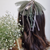 Style your pretty hair locks with this marvelous hair clip and add a romantic twist to your look. This beautiful double bow side accessory with a floral touch is sure to make you look like a Juliet both with long or short hair.