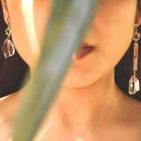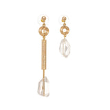 Asymmetric pair of golden colored danglers with crystalline beads that looks as beautiful as the falling drops of water.
