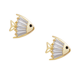 Connect with your water element and dive into your deeper self with these fish shaped crystal earrings that symbolize serenity. Sparkly with the right hint of gold, these fish-shaped earrings complement evening dresses as well as casual attire.