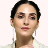 You are feminine and playful. You play by your own rules! These delicate, uneven length danglers with candy-coloured pink-and-white stones perfectly complement your chirpiness and charm.