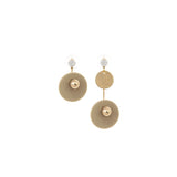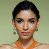 Gold and nude mismatched danglers based on acrylic and metal that are minimalist and classy.