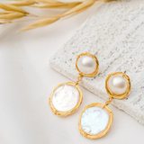 Material = 14k Gold Plating Brass. Baroque Pearls. Hypoallergenic Silver Post.