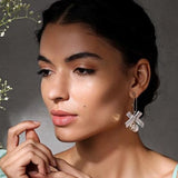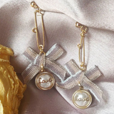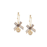 A contemporary dangler pair in pins and bows design, made with a classy combination of gold and grey.