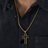 Power Cross Unisex Necklace is a bold and smart design that's not afraid to steal the spotlight! It is a gold chain with a solid gold cross pendant and black crystal embellishment. Rock it with your favorite tee or layer it up with other chains to show off your unique style. Because why blend in when you were born to stand out?