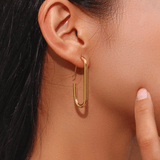 Pretty Paperclip Earrings feature a sleek, minimalist design, highlighting a simple yet elegant shape. Crafted for versatility, these earrings effortlessly complement various outfits, making them an ideal choice for both casual and formal occasions. They are the perfect day to night transformer pair of earrings.