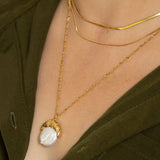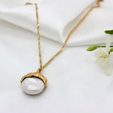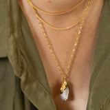 This beautiful necklace is designed with a classic and timeless pearl pendant. Crafted in stainless steel, it features an 18k gold plating that makes it skin-friendly, anti-tarnish, and water-resistant - perfect for everyday wear! Its simple yet elegant design adds sophistication to any outfit. This necklace is sure to become a favorite piece of jewelry in your wardrobe!
