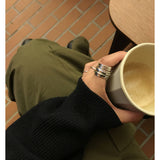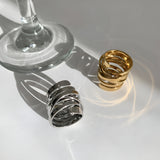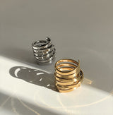 Bring on the bold simplicity with our Silver Halo Stack Ring. Its chunky layers evoke a futuristic vibe that seamlessly integrates into your daily style. Stack it with sleeker bands for an edgy, personalized look or wear it alone to let its statement design shine.